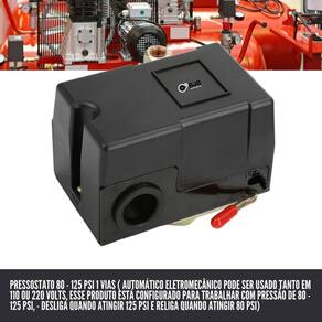 Compatibilidade Universal: Compatível com uma ampla gama de compressores, este pressostato é uma escolha versátil para diversas aplicações industriais e comerciais.