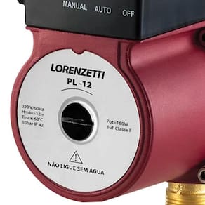 Pressurizador de Água Pl12 220v - Lorenzetti A linha de pressurizadores Lorenzetti traz comodidade ao dia a dia, seu uso é ideal em locais que sofrem com a baixa pressão de água, sua instalação é super rápida e prática, desenvolvido em material resistente a corrosão proporcionando maior segurança e pouquíssima manutenção. Fácil para realizar a instalação, possui manutenção prática e econômica, a fixação é direta em aquecedores de água a gás, silencioso e compacto, tem funcionamento manual ou até mesmo por fluxostato. É construído em materiais resistentes a corrosão, possui motor resfriado a água e possui chave seletora para ser desligado em caso de longa ausência da residência.