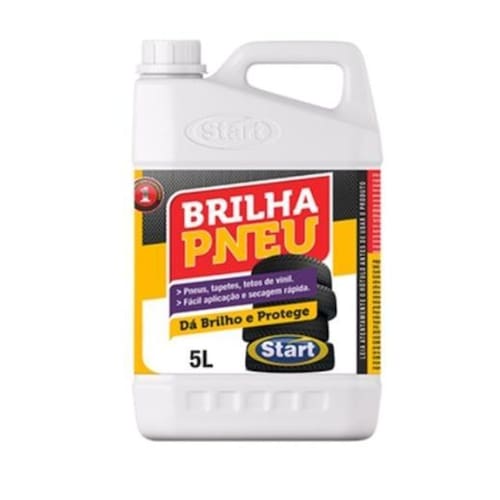 Descrição e características Brilha pneu start é um produto especialmente elaborado para limpeza e Manutenção de borrachas pretas do tipo pneus, forrações de piso, tetos de vinil, etc.