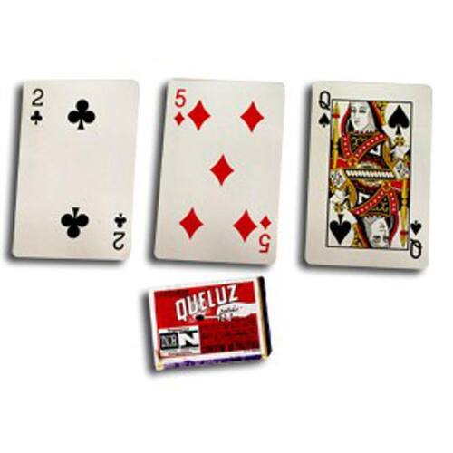 O mágico mostra 3 cartas e uma caixa de fósforos, e pede ao espectador para escolher uma carta aleatoriamente e colocar a caixa de fósforos em cima da carta.
