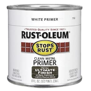 Primer Rust-Oleum 7780730 Rustoleum 7780-730 1/2 litro impede a ferrugem, 8 onças, metal plano branco limpo, 8 FL Oz