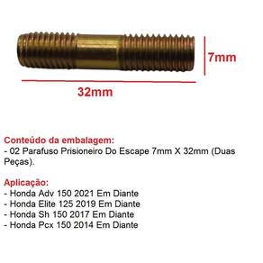 Prisioneiro Do Escape Adv 150 Sh 150 Elite 125 7mmx32mm Par Conteúdo da embalagem: - 02 Parafuso Prisioneiro Do Escape 7mm X 32mm Duas Peças . Aplicação: - Honda Adv 150 2021 Em Diante - Honda Elite 125 2019 Em Diante - Honda Sh 150 2017 Em Diante - Honda Pcx 150 2014 Em Diante Marca: Não Informado