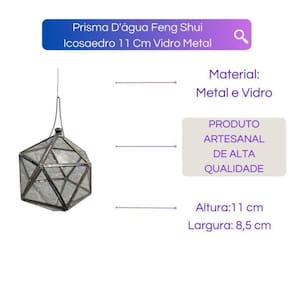 Prisma DÁgua Feng Shui em Vidro e Metal - Escolha o Modelo Cor: Icosaedro Facetado 11 cm Prisma DÁgua Feng Shui em Vidro e Metal - Escolha o Modelo