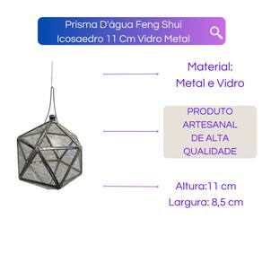Prisma D'água Feng Shui Icosaedro 11Cm Vidro Metal Facetado
