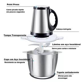 Processador de alimentos elétrico com corpo em aço inoxidável, motor potente, 2 níveis de velocidade + pulsar, partes removíveis para fácil limpeza.Acessórios