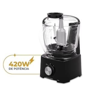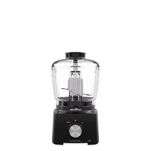 Processador Britânia BMN04A com 420W de potência, 1 velocidade + função pulsar, capacidade de 500ml, lâminas em aço inox, copo compatível com lava-louças e chave de segurança. Modelo compacto com fio.Acessórios