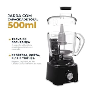 Sua capacidade de 500ml é ideal para o preparo de porções na medida certa, evitando desperdícios. A lâmina em aço inox do Processador Britânia BMN04A garante cortes precisos e alta durabilidade, processando os ingredientes com consistência.