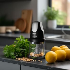 As 4 lâminas Maxx Chop em inox, do Processador Philco, garantem cortes precisos e uniformes, além de maior agilidade no processamento. A jarra com 600ml de capacidade oferece praticidade para receitas do dia a dia, ocupando pouco espaço na cozinha.