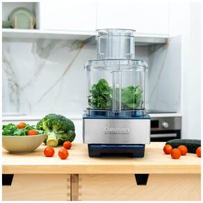 FUNÇÃO SUPERIOR O motor de 720 watts da Cuisinart para o nosso processador de alimentos de grande capacidade e 14 xícaras pode lidar com quase tudo Faça qualquer tipo de molho, sopa ou molho de purê, incluindo hummus, salsa, guacamole as possibilidades são infinitas DEVE TER CARACTERÍSTICAS O processador de alimentos de 14 xícaras possui botões o e off , pulse com uma tigela Lexan, tubo de alimentação extra grande com conjunto de manga de empurrador pequeno e grande Também uma haste de disco destacável para fácil uso e limpeza O comprimento do cabo é de INCLUÍDO Disco de corte padrão em aço inoxidável , disco de trituração médio e lâmina de cortar , misturar em aço inoxidável Também inclui uma espátula, manual de instruções e livreto de receitas com peças seguras para máquinas de lavar louça NOTA AO CONSUMIDOR As lâminas de trituração e corte não são ajustáveis Consulte o manual antes de configurar