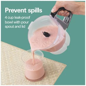 Processador de alimentos compacto Hamilton Beach com capacidade de 1L, potência de 250W, ideal para picar, fazer purê, misturar smoothies, fatiar e desfiar legumes e queijo. Lâmina quádrupla de aço inoxidável.Acessórios