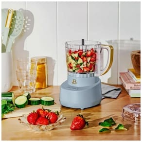 O mini processador de alimentos 3-Cup Food Chopper by Drew Barrymore, na cor rose, foi desenvolvido para preparo de pequenas porções em uso doméstico, com tigela de vidro de 3 xícaras adequada a receitas do dia a dia. O motor de 250W atua em conjunto com lâmina em aço inoxidável para picar, triturar e fazer purês de ingredientes como vegetais, ervas, nozes e bases de molhos.