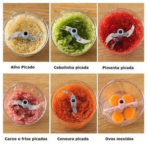 Ideal para cozinhas compactas, motorhomes, acampamentos. Multifuncional: pica, mistura e espreme com extrema facilidade. Possui 5 lâminas em aço inoxidável super afiadas. Sistema totalmente desmontável para facilitar a limpeza. Tamanho compacto para fácil armazenamento e transporte.Acessórios