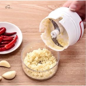 Triturador De Alimentos Manual com duas Lâminas, Ótimo para Triturar e processar pequenos alimentos de forma simples e rápida. Apenas insira o alimento no recipiente, feche-o, e puxe sua corda retrátil até o alimento estar processado da maneira que desejar.