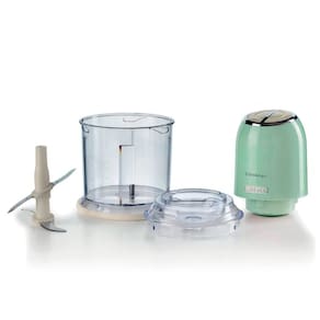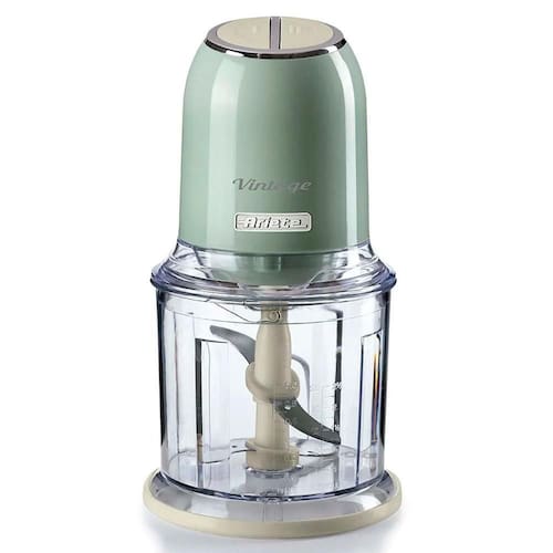 A Linha Vintage da Ariete é enriquecida com um produto indispensável para suas receitas na cozinha: um triturador com linhas retrô e suaves tons pastéis, perfeito para trazer um toque de estilo e funcionalidade à sua cozinha. Graças aos seus 400 Watts de potência e 4 lâminas de aço inoxidável, o Vintage Chopper permite picar qualquer ingrediente para as suas receitas: desde vegetais a carnes, queijo, pão, frutos secos e até gelo. As 2 velocidades, que podem ser acionadas com os dois botões na parte superior do picador, permitem picar finamente os alimentos, enquanto os pés antiderrapantes garantem a máxima aderência do produto à bancada.