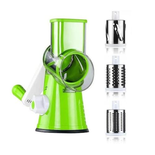 Processador Fatiador Ralador Legumes Queijos 3 em 1 Portátil Ralador de Legumes Queijos Fatiador Espiral Processador 3 Lâminas Slicer Round Tabletop Drum Grater 3 em 1 Ralador e Fatiador Mulltiuso 3 Lâminas Manual - Tabletop Drum Grater Verde Cortador de Legumes Manual com Manivela Equipado com 3 lâminas de aço inoxidável de alta qualidade, resistente e afiada. Contém 3 cilindros com Lâminas em aço inoxidável duráveis e afiadas. Os cilindros são simples de trocar e o mecanismo de manivela muito fácil para operar e limpar. A base de sucção garante aderência e estabilidade em uma superfície plana. Design moderno, fácil de limpar e tamanho compacto para economizar espaço da sua cozinha. Perfeito para fatiar e/ou ralar queijo, legumes, batatas, nozes, pepinos, cebolas, chocolates e muito mais. Funciona com um mecanismo simples de manivela que gira o tambor e processa perfeitamente os alimentos. Descrição do Produto: 1 Ralador Ralador De Legumes Queijo Fatiador Espiral Processador 3 Lâminas Tabletop Drum Grater 3 em 1 Manual Multiuso Portátil; Material: Plástico e Aço Inoxidável; Tipo de plástico: ABS e PP; Cor: Verde; Modelo: Cortador de Legumes Multifuncional; 3 tipos diferentes de lâminas para ralar e fatiar alimentos; Peso: 670 g; Tamanho: 26 x 11,5 x 24 cm. Imagem ilustrativa; Todas as informações são de responsabilidade do Fabricante. Ean: 7920119415713