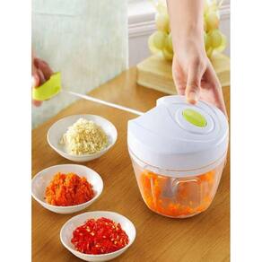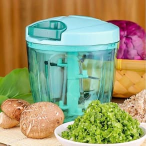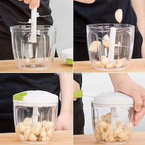 Processador de alimentos manual 5 lâminas Puxe a corda para triturar, cortar e picar diversos tipos de alimento Prático, economiza muito tempo no preparo dos alimentos Fácil de Limpar, e ocupa pouco espaço na cozinha; Fácil manuseio, formato anatômico e prático Não deixa cheiro de alho nas mãos Seguro e evita se machucar com facas O triturador e processador de alimentos manual, funciona de maneira simples e prática: Basta inserir o alimento no recipiente acrílico, fecha-lo, puxar a corda retrátil e pronto, está processado e triturado. Outra vantagem deste modelo está nas dimensões, bem maiores do que os modelos de mercado. Em acrílico e aço inoxidável fazem com que o processador seja extremamente bonito, durável e de fácil limpeza. - 5 lâminas giratórias em aço inox - Diâmetro 12,5cm - Altura 14,5cm 1 Tampa para guardar o copo com o alimento triturado na geladeira Capacidade do copo 900 ml Base do copo com borracha para não escorregar Eficiente e prático Facilita a sua vida na cozinha Ideal para Cebola, Alho, Cheiro Verde, Tomate, Legumes... Pica de forma fácil e rápida