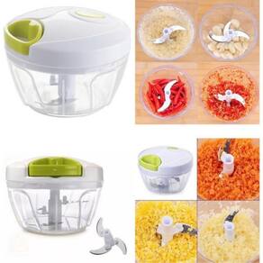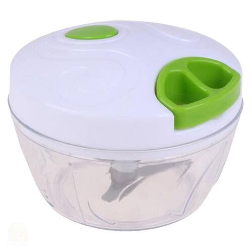 Leve, prático, compacto e de fácil manuseio. Basta colocar os alimentos no recipiente, travar e puxar a corda. Possui 3 lâminas muito afiadas de inox com altíssima