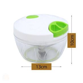 Processador triturador manual de alimentos 3 lâminas Cor: branco Descrição: Mini processador e triturador de alimentos com 3 lâminas O processador triturador de alimentos é simples, prático e fácil de utilizar. Basta puxar a corda e você terá em instantes ervas frescas e vegetais triturados para molhos, saladas e sopas. Possui três lâminas curvas e afiadas, que giram rapidamente quando o processador é acionado. Possui base antiderrapante para melhor aderência na superfície, e seu recipiente suporta até 400ml. Pode ser levado à mesa, como uma tigela para servir.