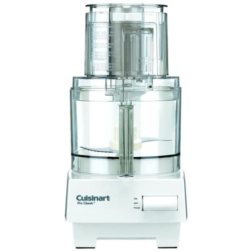 Multiprocessador Cuisinart Pro Classic, 7 xícaras, com disco de fatiamento médio, disco de trituração, lâmina de corte em aço inoxidável, empurradores pequenos e grandes, haste de disco destacável, capa plana compacta e espátula. Ideal para preparar diversos alimentos, desde saladas até massas de pão.Acessórios
