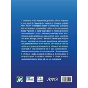 As organizadoras do livro são enfermeiras, professoras doutoras, integrantes do corpo docente do Programa de Pós-Graduação em Enfermagem em Saúde Pública (ProEnSP) da Universidade do Estado do Amazonas (UEA). As produções técnicas e tecnológicas apresentadas nos capítulos do livro são produtos do Mestrado Profissional do ProEnSP e de trabalhos do Programa de Iniciação Científica e Tecnológica da UEA. A intenção do livro é divulgar estudos desenvolvidos no contexto amazônico que visam contribuir para a da saúde de sua população, discutir e oportunizar caminhos para produções técnicas e tecnológicas em enfermagem desenvolvidas por profissionais de saúde, docentes e discentes do meio acadêmico e dos serviços de saúde. Os capítulos foram preponderantemente escritos por enfermeiros, mas conta com a participação de outros profissionais da área da saúde. Apresenta uma variedade de abordagens utilizadas na produção de técnicas e tecnologias na área de enfermagem e saúde, expressando experiências em diferentes campos. A obra está organizada em três partes: Tecnologias do Cuidado, Tecnologias Educacionais e Tecnologias Sociais, cada uma com cinco capítulos.