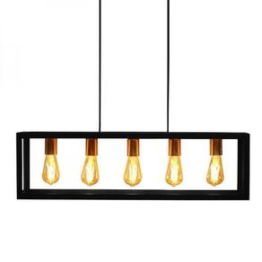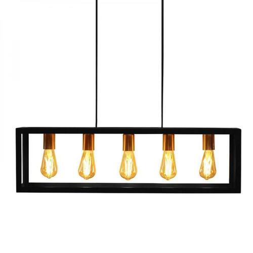 Pendente Hoke na Cor Preto com Acabamento Cobre para 5 Lâmpadas E-27 Bivolt - TP-HOKE-PT. | Medidas: 80x26cm | Garantia de 3 meses.