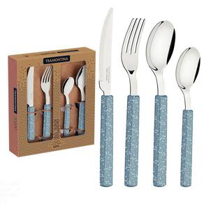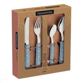 O faqueiro Tramontina Bliss com lâminas em aço inox e cabos de polipropileno azul acinzentado 16 peças é perfeito para quem ama aquele clima misterioso e místico até mesmo na decoração da sua mesa. Lindas e com uma serigrafia muito especial no cabo, inspirada no tema "mapa astral", as peças são produzidas com lâminas de aço inox e cabos de polipropileno, onde suas facas possuem um excelente fio de corte, pois contam com tratamento térmico e seus garfos e colheres são mais resistentes e duráveis, graças a estampagem e espessura das lâminas. Deixe sua mesa ainda mais especial com o faqueiro Tramontina Bliss! Orientações Lâminas de aço inox. As lâminas das facas têm maior durabilidade do fio devido ao tratamento térmico. Os garfos e colheres garantem maior resistência devido a espessura do aço e a estampagem das lâminas. Os cabos de polipropileno possuem uma estampa moderna. Características Gerais EAN13 7891112300613 DUN14 17891112300610 NCM 8215.20.00 Peso Líquido 0,4200 kg. Peso Bruto 0,6200 kg. Metragem 0,002497 m³. Dimensões Embalagem (Compr. X Larg. X Alt.) 232x 207x 52 mm. Cor 1 7594B3 Hexa Observações Antes da primeira utilização, lave bem as peças e seque-as. Tenha cuidado ao manusear produtos cortantes e perfurantes e mantenha-os fora do alcance das crianças. Para limpeza dos talheres, recomenda-se lavar manualmente com esponja macia, água, detergente neutro e secá-los antes de guardar. Para maior durabilidade, não utilize em máquinas de lavar. Para descarte dos produtos e embalagem siga as orientações de reciclagem vigentes.