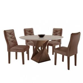 Características: Estrutura em MDF Tampo Redondo Espessura do Tampo 25 mm 4 cadeiras estofadas Revestimento da cadeira em tecido Suede Enchimento do encosto espuma D-20 Enchimento do assento espuma D-23 Cada cadeira suporta até 120 kg Acabamento em Pintura UV
