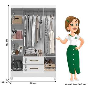 Guarda Roupa Solteiro Paraty 4 Portas Branco Brilho - Moval
