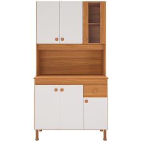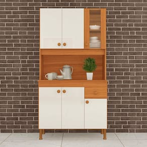 A Cozinha Indekes Laura conta com estrutura reforçada, feita com MDP 15mm, e outros diferenciais, como dobradiças e corrediças metálicas, puxadores externos em ABS, pés com regulagem de altura, portas com vidro liso incolor de 3mm, revestimento de fita borda em melanina e acabamento em pintura UV.