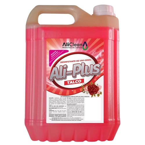 Produto de Limpeza Desinfetante Uso Geral AliPlus Talco 5 L Limpador Cloro Gel de Uso Geral AliClean 5L - Limpeza Profunda com Cloro e Detergente O Limpador Cloro Gel AliClean 5 litros combina o poder do cloro com a ação desengordurante do detergente em uma fórmula em gel de alta performance. Ideal para a limpeza de banheiros, cozinhas e áreas externas, atua profundamente em azulejos, vasos sanitários, pias, cerâmicas e superfícies laváveis, removendo sujeiras difíceis, odores e resíduos. Pode ser puro ou diluído, garantindo flexibilidade e rendimento na higienização de diversos ambientes. Além de limpar, ainda deixa um perfume agradável, promovendo sensação de frescor por toda a casa. Características do Produto: Tipo: Limpador clorado em gel com detergente Composição: Hipoclorito de sódio, tensoativos, espessantes, fragrância e veículo Volume: 5 litros Indicação: Limpeza de banheiros, cozinhas, áreas externas, pisos e superfícies laváveis Modo de uso: Aplicar puro nas áreas com sujeira pesada ou diluir 200ml em até 10L de água para uso geral. Deixar agir por 10 minutos e enxaguar Fragrância: Suave Precauções: Não utilizar em carpetes ou pisos de madeira Uso seguro em ambientes com pets, respeitando o enxágue adequado após aplicação Marca: Não Informado