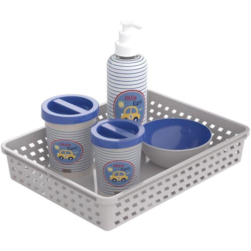 Kit higiente composto por:Cestinha de Plástico Retangular Organizadora Média: 24,7x18,7x6,3 cm (CxLxA)Dispenser 480 ml para Álcool Gel: 6,5x23,1 cm (DxA)Porta-Cotonete: 8,3x10,2 cm (DxA)Porta-Algodão: 8,3x10,2 cm (DxA)Molhadeira 380 ml: 12,4x5,3 cm (DxA) Embalagem: KIT Este é um produto excelente. Seu uso é de extrema qualidade e precisão. Produzido com materiais de primeira linha, atenderá muito bem suas necessidades.
