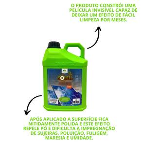SOLEIL é um limpador multitensoativo para limpeza e proteção de painéis solares, removendo instantaneamente a sujidade. Além disso, deixa na superfície uma película protetora, conservando a superfície isenta de sujeira por mais tempo, protegendo contra ação de agentes, como: chuva, fuligem, poeira, maresia e demais incrustações. Restaura a transparência com ação antiaderente e autolimpante. favorecendo a captação e eficiência energética. Formulação inédita no Brasil composta por múltiplos tensoativos, agentes desincrustantes e formador de película que proporciona limpeza de alta performance e uma camada de proteção seca (PTFE) com brilho e acabamento hidrofóbico evitando acúmulo de sujidades e incrustações.