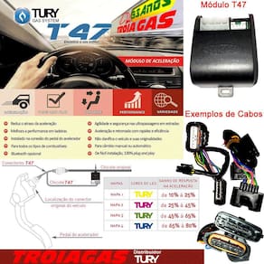 O programador TURY T47 PROG de Variador para Acelerador Eletrônico da TURY T47 permite escolher qual dos 4 mapas e 9 níveis de aceleração e assim melhorar muito o desempneho do veículo, pois o acelerador responde mais rapidamente e com isso a experiência de direção fica muito mais agradável. Assim o GNV terá um desempenho muito superior, permitindo retomadas e ultrapassagens mais seguras. Veja os carros compatíveis na Tabela de Aplicações mais abaixo. Funcionamento: conectado ao T47 instalado no pedal do veículo que tem acelerador eletrônico, permite selecionar um dos 4 mapas de redução do tempo de resposta da aceleração e ainda tem 9 níveis. Para quando o variador estiver atuando no veículo injetando GNV. O convertedor pode ajustar com esta ferramenta T47 PROG, os variadores T47 com respectivos cabos conectores conforma a Tabela de Aplicações. INSTALAÇÃO: Com a chave desligada, após 10 minutos da porta aberta, desconecta-se o conector do pedal do acelerador eletrônico e conecta-se o módulo T47. Conecte a ferramenta T47 PROG para fazer a configuração, e pronto, ou seja, Plug & Drive, conecta-se escolhe o mapa e o nível desejado e já pode dirigir aproveitando a aceleração muito mais rápida dentre as combinações possíveis. Após rodas um pouco com o veículo pode-se concluir que o carro ficou com uma reposta muito forte e reduzir a programação ou vice-versa. OBSERVAÇÕES: O carro necessita ter um variador T47 que é vendido separadamente. Atua e qualquer tecnologia de Kit GNV 3ª, 4ª, 5ª e 6ª geração Aplicação: Veículos injeção eletrônica com acelerador eletrônico, com GNV Principais Vantagens Reduz o atraso da aceleração Melhora a performance em ladeiras Instalado na conexão do pedal do acelerador Não danifica o veículo e suas originalidades Bluetooth opcional Agilidade e segurança nas ultrapassagens em estradas Aceleração e retomada com rapidez e eficiência Para câmbio manual e ou automático De fácil instalação 100% plug & play - Necessita do Programador T47 para a configuração. Consulte a Tabela de Aplicações ACELERACÃO Respostas Rápidas PLUG AND PLAY Conecte e Dirija CONTROLE Você escolhe PERFORMANCE Desempenho VARIEDADE Modelos Mapa 1 = 40% Níveis 1 a 9 Mapa 2 = 50% Níveis 1 a 9 Mapa 3 = 60% Níveis 1 a 9 Mapa 4 = 80% Níveis 1 a 9