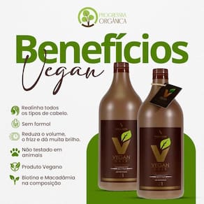 Progressiva orgânica vegan hair orgânica com biotina e macadâmia - sem formol - 2x1000ml chega de cabelos com frizz e sem brilho. Revele sua beleza. Descubra o segredo para a transformação perfeita e natural em todos os tipos de cabelos com o kit progressiva orgânica vegan hair orgânica e vegana