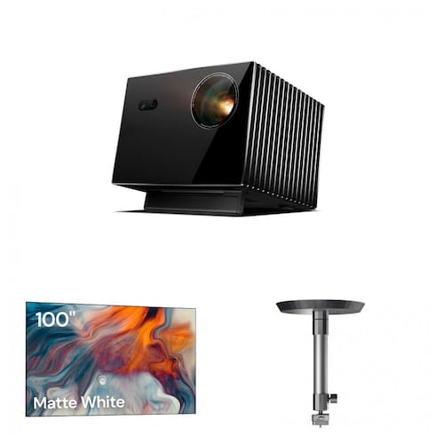 Projetor 4K a laser VisionMaster Max Valerion com tela fixa 100 polegadas e suporte de teto ajustável 110V