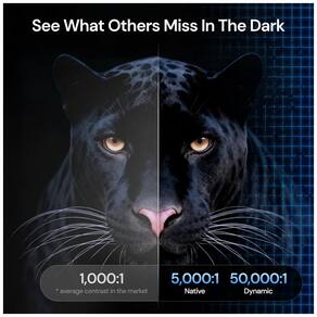 Recursos e tecnologias: Projetor com 3.500 lumens ISO, contraste dinâmico até 50.000:1, 110% Rec.2020, iris dinâmica, mapeamento de tom dinâmico, tecnologia Anti-RBE, relação de projeção 0,9–1,5:1, deslocamento de lente vertical ±105%, modos de baixa latência para jogos, Google TV, Wi-Fi 6E, rede gigabit, Dolby Atmos e DTS; tela fixa 100" com superfície matte branca ganho 1,3, PVC de alta qualidade, ângulo de meia-ganho de cerca de 170°, superfície tensionada, compatível com 4K/8K; suporte de teto em alumínio com capacidade até 10 kg, altura ajustável 31–40,5 cm (12 cm sem extensão), rotação 360°, inclinação de cerca de 20°, engate rápido e passagem interna de cabos