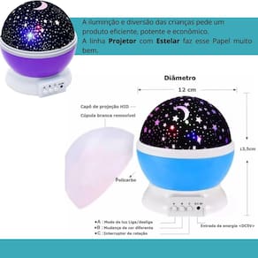1 como funciona a projeção 360º R: a luminária projeta um céu estrelado em todas as direções, criando uma atmosfera mágica e envolvente no ambiente.