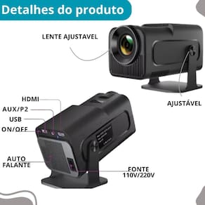 Especificações: Resolução: 1080p Distância de projeção: 1 a 4 metros Lâmpada: led de longa duração Lúmens: 10000 Relação de contraste: 2000:1 Vida útil: 100.000 horas Wi-fi: 5g Sistema android: 11 integrado Ram: 2gb Rom: 8gb