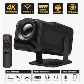Especificações: Resolução: 1080p Distância de projeção: 1 a 4 metros Lâmpada: led de longa duração Lúmens: 10000 Relação de contraste: 2000:1 Vida útil: 100.000 horas Wi-fi: 5g Sistema android: 11 integrado Ram: 2gb Rom: 8gb