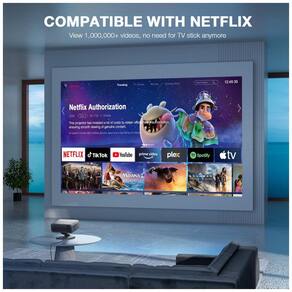 O projetor inteligente AuKing H10 é um dispositivo desktop com sistema Linux otimizado e apps oficiais pré-instalados como Prime Video e YouTube, projetado para reprodução de conteúdo em telas de até 300 polegadas. Serve para cinema doméstico, jogos e apresentações em casa ou ao ar livre, com foco TOF automático em 0,3 segundos e correção keystone automática para setup rápido.