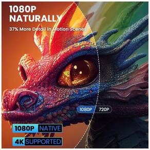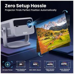 Equipado com WiFi 6 dual-band e Bluetooth 5.2 bidirecional, permite conexão sem fio para streaming e áudio. Possui alto-falantes Hi-Fi 2x10W com equilíbrio de som por IA, proporção de projeção que gera imagens de 102 cm a 381 cm em distâncias de 0,57 m a 5,68 m. O design portátil pesa 3 kg e suporta instalação versátil em casa, quarto ou acampamentos.