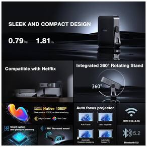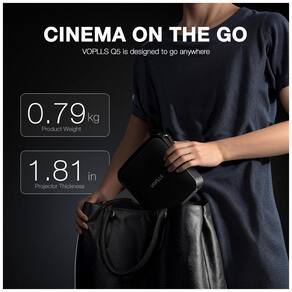 O VOPLLS Q5 é um projetor mini portátil LCD com espessura de 4,6 cm, resolução nativa Full HD 1920x1080 e suporte a 4K via aplicativos, equipado com sistema operacional Smart TV 2026 e apps oficiais como Netflix, YouTube e Prime Video para acesso direto a streaming sem dispositivos extras. Seus diferenciais incluem foco automático, correção keystone 6D/4P, suporte rotativo 360° sem ferramentas e sensores giroscópicos para ajustes em tempo real de imagem em 5 segundos. Ideal para home cinema, jogos ou uso externo em ambientes escuros, projeta telas de 89 a 533 cm (35 a 210 polegadas).