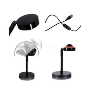 Especificação: - tamanho: altura: 24 cm; - diâmetro do suporte da lâmpada: 8 cm; - diâmetro do chassi: 10 cm o suporte da lâmpada pode ser girado . - material: alumínio