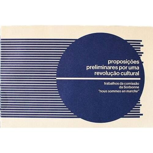 "Proposições Preliminares por uma Revolução Cultural", da Comissão Nous Sommes en Marche, da Sorbonne, lançada a primeira vez na revista de arquitetura moderna "Le Carré Bleue" em 1968, as "Proposições" consistem de 51 teses incendiárias que preparam o terreno para o novo mundo. Nossa edição, é bilíngue, tem 68 páginas e um tratado zeloso com a materialidade gráfica do livro-objeto. O pôster que acompanha o livro é no tamanho A2, impresso em fotolito. A arte do cartaz deriva de uma colagem manual realizada pela sobinfluencia. Marca: SOBINFLUENCIA