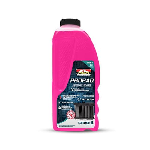 Prorad Aditivo Radiador Proauto 1L Prorad é um Aditivo orgânico para radiadores. Ele é: -anticorrosivo -previne o congelamento e o superaquecimento -para todos os tipos de combustíveis -auxilia na manutenção da bomba d'água Prorad é um aditivo de radiador indicado para evitar oscilações de temperatura, evitando assim corrosões e mantendo a lubrificação, protegendo o motor e seus componentes. Modo de usar: O aditivo já vem pronto para uso, não sendo necessária a sua diluição, bastando somente completar o reservatório com o produto, ou no caso de troca de água, ou aditivo, encher todo o radiador. Produto não inflamável Ean: 7898645220029
