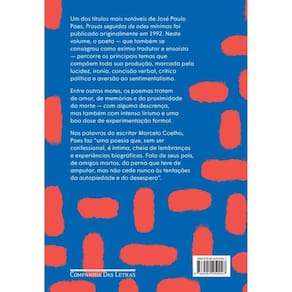 Edição de bolso de uma das obras mais marcantes do poeta, tradutor e ensaísta José Paulo Paes. Marcado pela lucidez, pela ironia, pela concisão verbal e pela aversão ao sentimentalismo, este volume — publicado originalmente em 1992 — percorre os principais temas que compõem a obra de José Paulo Paes, um dos principais nomes da literatura brasileira do século XX. Entre outros motes, os poemas abordam o amor, a força da memória, a proximidade da morte e a crítica política — com alguma descrença, mas também com intenso lirismo e uma boa dose de experimentação formal. Nas palavras do escritor Marcelo Coelho, “o autor faz uma poesia que, sem ser confessional, é íntima, cheia de lembranças e experiências biográficas. Fala de seus pais, de amigos mortos, da perna que teve de amputar, mas não cede nunca às tentações da autopiedade e do desespero”. * Leitura obrigatória do vestibular da UNICAMP.
