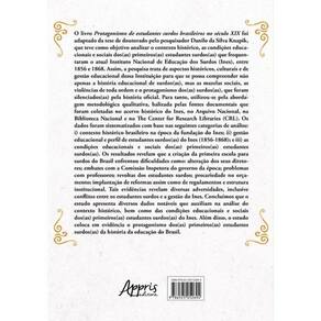 O livro Protagonismo de estudantes surdos brasileiros no século XIX foi adaptado da tese de doutorado pelo pesquisador Danilo da Silva Knapik, que teve como objetivo analisar o contexto histórico, as condições educacionais e sociais dos(as) primeiros(as) estudantes surdos(as) que frequentaram o atual Instituto Nacional de Educação dos Surdos (Ines), entre 1856 e 1868. Assim, a pesquisa trata de aspectos históricos, culturais e de gestão educacional dessa Instituição para que se possa compreender não apenas a história educacional de surdos(as), mas as mazelas sociais, as violências de toda ordem e o protagonismo dos(as) surdos(as), que foram silenciados(as) pela história oficial. Para tanto, utilizou-se pela abordagem metodológica qualitativa, balizada pelas fontes documentais que foram coletadas no acervo histórico do Ines, no Arquivo Nacional, na Biblioteca Nacional e no The Center for Research Libraries (CRL). Os dados foram sistematizados com base nas seguintes categorias de análise: i) contexto histórico brasileiro na época da fundação do Ines; ii) gestão educacional e perfil de estudantes surdos(as) do Ines (1856-1868); e iii) as condições educacionais e sociais dos(as) primeiros(as) estudantes surdos(as). Os resultados revelam que a criação da primeira escola para surdos do Brasil enfrentou dificuldades como: alteração dos seus diretores; embates com a Comissão Inspetora do governo da época; problemas com professores; revoltas dos estudantes surdos; precariedade no orçamento; implantação de reformas assim como de regulamentos e estrutura institucional. Tais evidências revelam diversas adversidades, inclusive conflitos entre os estudantes surdos e a gestão do Ines. Concluímos que o estudo apresenta diversos dados notáveis que auxiliam na análise do contexto histórico, bem como das condições educacionais e sociais dos(as) primeiros(as) estudantes surdos(as) do Ines. Além disso, o estudo coloca em evidência o protagonismo dos(as) primeiros(as) estudantes surdos(as) da história da educação do Brasil.