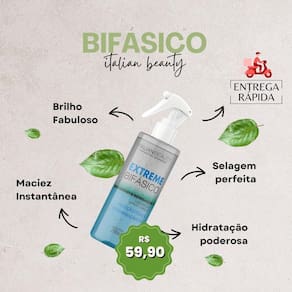 O extreme bifásico da italian beauty é a solução para cabelos danificados e sem vida. Com sua fórmula poderosa, ele repara, hidrata e protege seus fios, deixando-os brilhantes e macios como a seda.