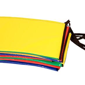 Proteção Protetor de Molas para Cama Elástica Pula Pula 4,30m Melhor Qualidade. Indicada para Cama Elástica Nacional ou Importada no formato circular com diâmetro de 4,30m. IMPORTANTE: Para saber o diâmetro de sua cama faça o seguinte procedimento: - Com ela montada, meça com uma trena de ferro a ferro pelo meio da cama, assim irá encontrar o diâmetro correto. Especificações - Proteção sobre molas coloridas com revestimento em XP300, tanto do lado superior e inferior; - Produto não absorve água; - Revestimento interno com polipropileno expandido; - Costura dupla no acabamento; - Fitas CB20mm para amarração; - Multicolorida amarelo, azul, verde e vermelho ; - Não acompanha acessórios; - Garantia: 90 dias contra defeito de fabricação; - Validade do Produto: Indeterminada. DICA: Para maior durabilidade do produto, após o uso conservar em local fechado. A proteção é confeccionada com as melhores matérias-Primas. Ean: 2960000391325