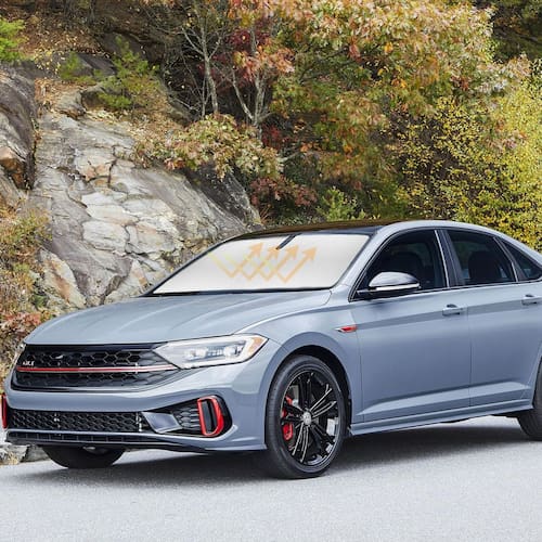 Protetor solar para para-brisa 4 camadas dobrável para janela frontal refletor, protetor de viseira bloqueia os raios UV. Para-brisas para carro | Protetor solar refletor oferece proteção máxima para o interior do carro | Bloqueador solar refletivo legal Para-brisas para carro com bolsa de armazenamento. Viseira solar refletiva de material 240T com recorte para espelho Upgrades Design Sunshade- Ele realmente faz um ótimo trabalho de segurar o calor, bom para alguém que mora na Flórida. Ótimo para qualquer viajante ávido que vive no ensolarado Texas, para experimentar o para-sol de carro para o seu carro, porque fica muuuuito quente lá. Use-o para várias viagens rodoviárias pelo estado, diga adeus ao assento quente do carro. Mantenha seu Hyundai Elantra mais fresco e evita que os assentos de couro rachem e desbotem - Material reflexivo bloqueia efetivamente o calor e os raios UV - Reduz significativamente a temperatura interior em dias quentes. - Fácil de instalar, basta desdobrar sobre o vidro - Dobra-se convenientemente em um tamanho compacto para armazenamento - Bem construído com materiais de qualidade duráveis - Protege o painel e o interior dos danos causados pelo sol. Recomendado este protetor solar para para-brisas! É fácil de colocar e dobrar. As instruções dizem para você dobrá-lo ao meio para que os círculos fiquem juntos e, em seguida, gire as duas mãos em direções opostas. Junte-os e alinhe tudo o máximo que puder, então use o elástico para prendê-lo. Quando você faz isso o tempo todo, você vai conseguir rápido. A prática leva à perfeição, encontre o truque. Você vai dobrar super rápido. Quanto ao tamanho, cabe perfeitamente. Ele se encaixa perfeitamente e realmente ajuda a manter o calor baixo além de proteger - ?Específico do veículo?Nossa capa de para-brisa para para-brisa serve para VW Jetta 2019-2023 2024 2025 carro, sem lacunas, ajuste 100% perfeito. O design de ajuste preciso e o anel de aço reforçado são suficientes para permitir que o protetor solar se encaixe precisamente na janela frontal sem a necessidade de ventosas para mantê-lo no lugar, protegendo efetivamente seu carro dos raios solares. - ?Bloqueia o excesso de sol quente e calor?: Feito de tecido de poliéster 240T com uma camada de isolamento preta e uma camada refletiva prateada, este para-sol é leve e resistente ao desgaste, proporcionando isolamento superior e proteção solar. Economize energia e gasolina eliminando a necessidade de esperar 15 minutos para que seu carro esfrie em dias quentes. - ?99% de proteção UV? - Design de camada dupla, oferecendo melhor proteção contra o sol, bloqueia até 99% dos raios UV prejudiciais e acúmulo de calor. Com este protetor solar de para-brisas, ele pode proteger o interior do carro contra raios UV prejudiciais e calor que causariam o desbotamento do painel e dos assentos. Quando você viaja de carro ou precisa de uma soneca, as persianas de para-brisa de ajuste personalizado podem bloquear 99% do brilho do sol e dos raios UV, proporcionando mais proteção para você e sua família. - [Configuração rápida e fácil] O design de anel de aço redondo duplo permite que você suporte o para-sol no para-brisa com um fecho aderente facilmente e fecho dobrável em um pequeno círculo de armazenamento na bolsa. O para-sol do para-brisa pode ser dobrado e armazenado na bolsa de armazenamento, o que é fácil de armazenar e transportar a qualquer momento. - ?Mantenha o interior do seu carro fresco?O calor solar pode atingir temperaturas muito altas no carro, os raios UV podem danificar os eletrônicos, volante, couro de painel e assentos do seu carro. Projetado com um revestimento prateado, nosso protetor de viseira reflete o calor, reduzindo o acúmulo de calor em até 4,4 °C. Mantém a temperatura interna do seu carro ideal.
